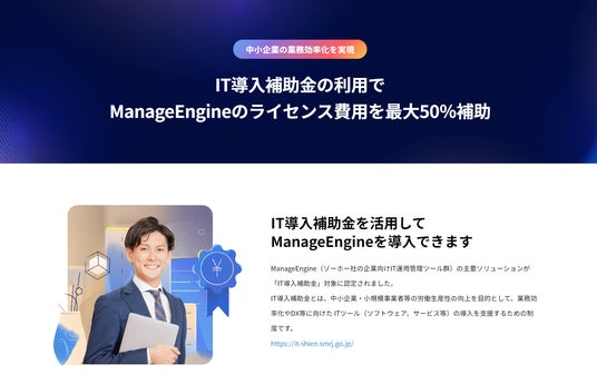 ゾーホージャパン株式会社(代表取締役:Manikandan Thangaraj - マニカンダン・タンガラジ、本社:横浜市)は、ManageEngine(ゾーホー社の企業向けIT運用管理ツール群)の以下主要ソリューションが、「IT導入補助金*1」対象に認定されたことを発表致します。