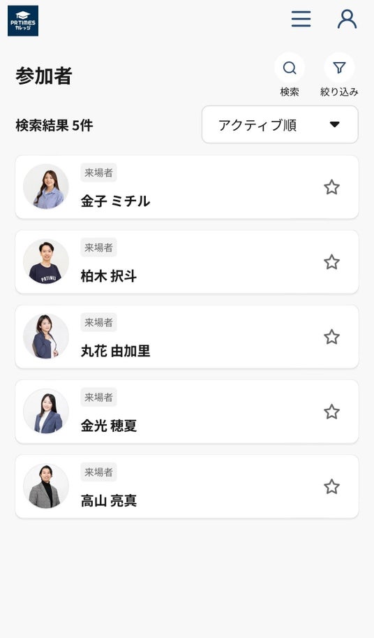 参加者検索イメージ画像(イベント時の仕様と異なる場合がございます)
