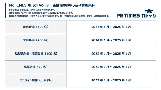 PR TIMESカレッジVol.9お申し込み(会場参加・オンライン視聴 共通)