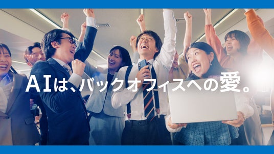 また同日より、俳優・滝藤賢一さん、お笑い芸人・横澤夏子さん出演の新TVCM「盛り上がる社員」篇を関東・関西エリアで順次放映開始。AIが働く人の「手間」を減らす様子を、テンポよく軽快に描き、AIがオフィスの新しい仲間になる未来を表現しています。