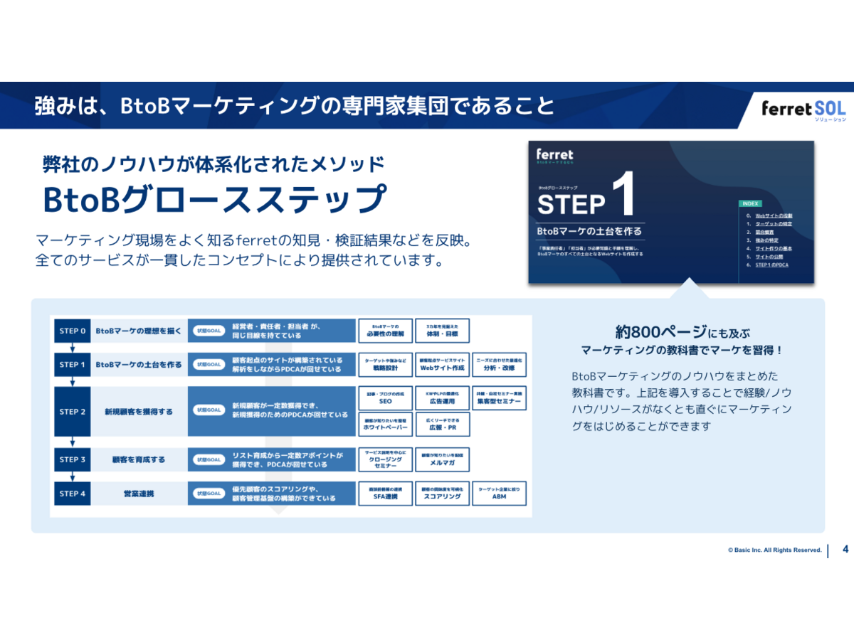 - マーケティングを体系化した「BtoBグロースステップ」による支援